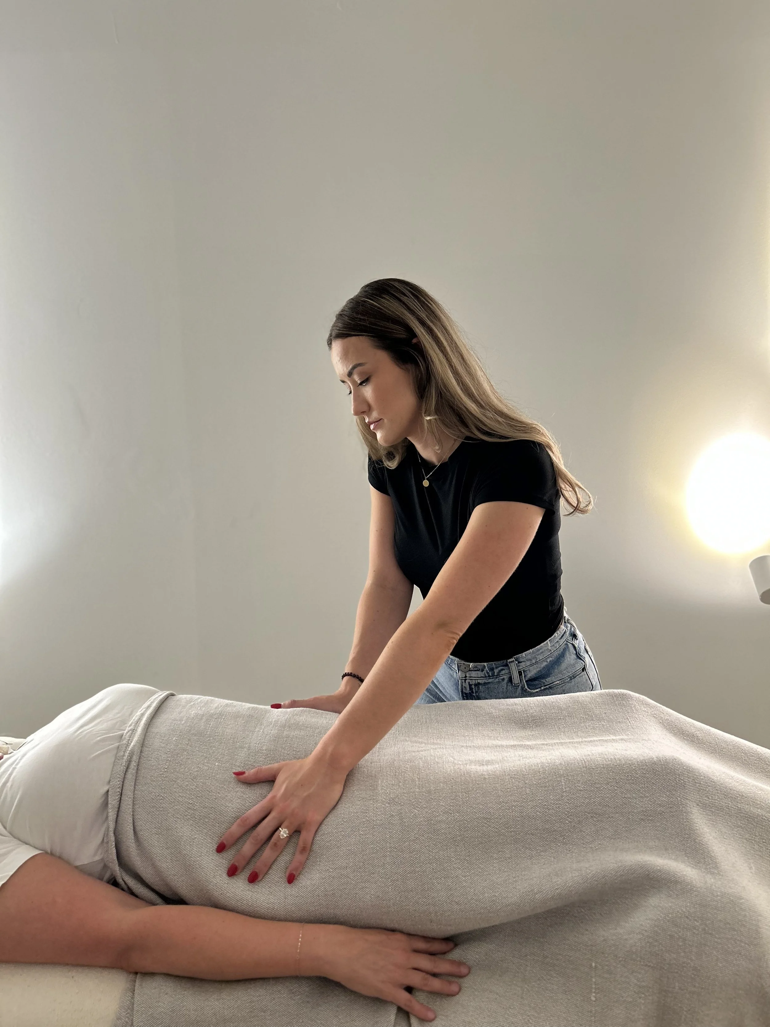 A sacred feminine ritual rooted in traditional postpartum practice — and reimagined for any woman moving through a major life transition. Through rebozo wrapping, energy work, and guided ceremony, this session offers closure, deep nervous system nourishment, and a honouring of what you've been through. Because some chapters deserve to be properly closed before you begin the next one.